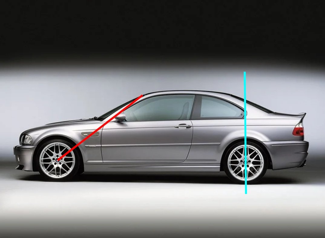 Pillars vs. Axles: A-pillar pointing to the front axle; C-pillar over rear axle.